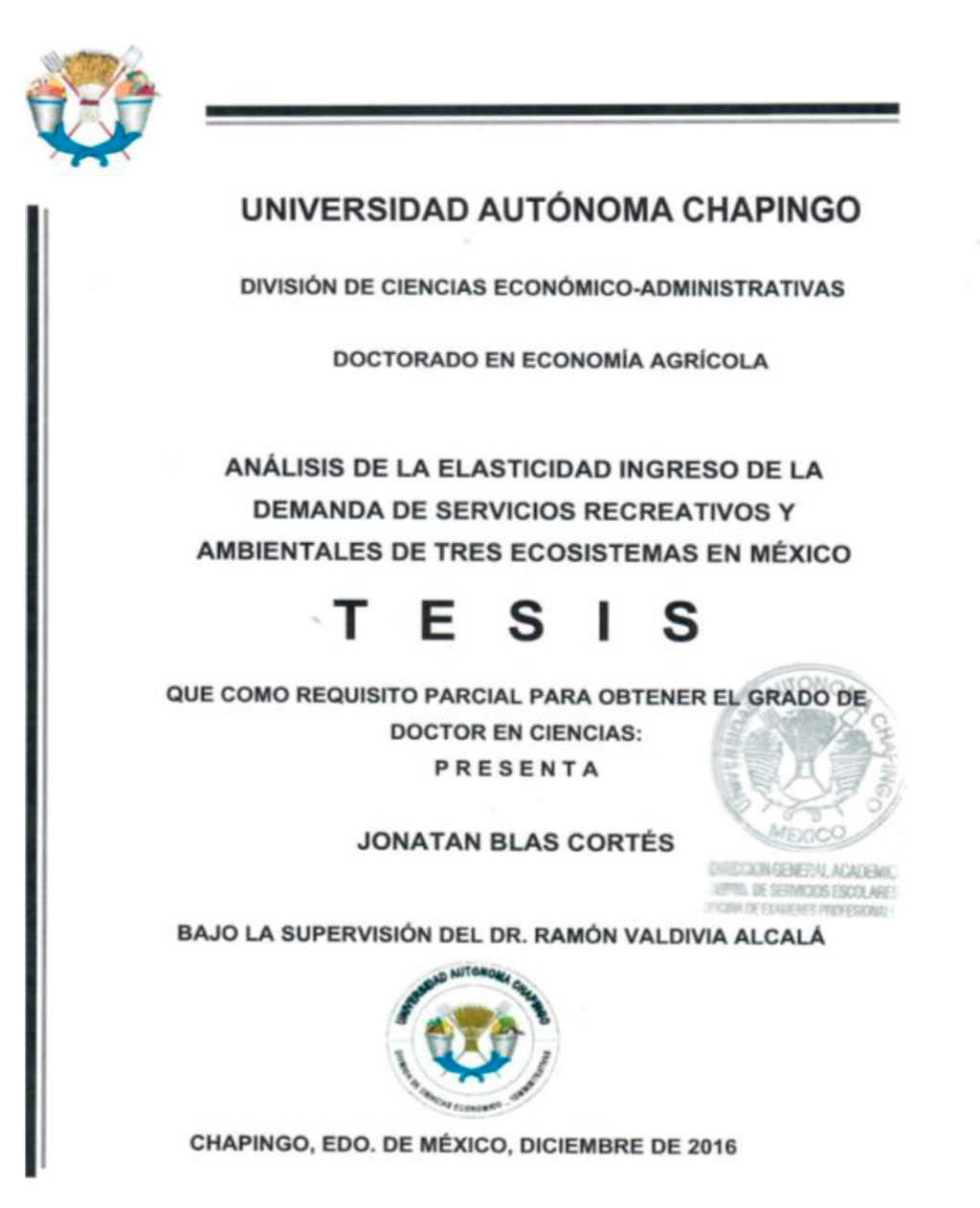 Tesis (Doctorado en Ciencias en Economía Agrícola)