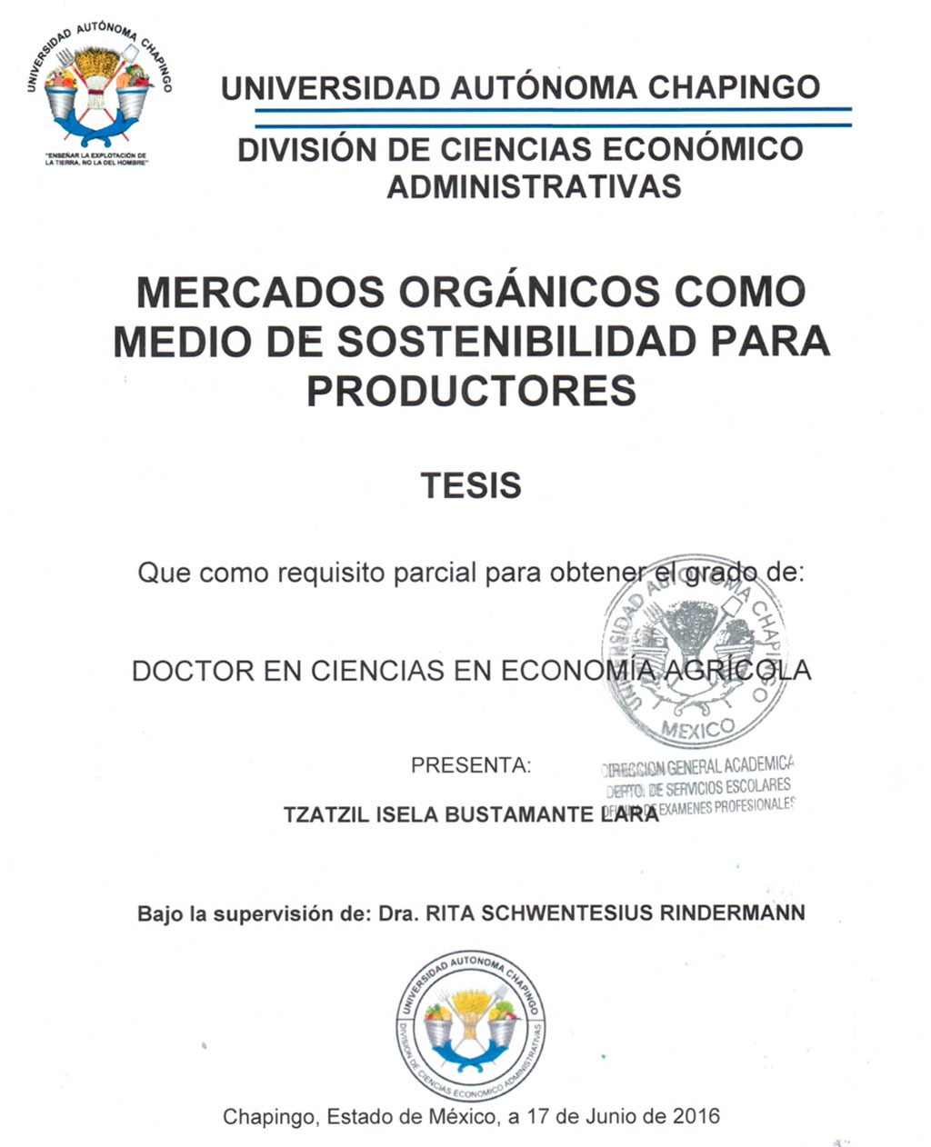 Tesis (Doctorado en Ciencias en Economía Agrícola)