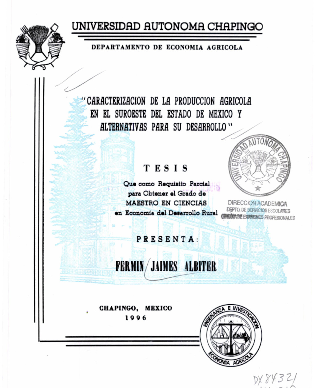 Caracterización de la producción agrícola en el suroeste del Estado de México y alternativas para su desarrollo