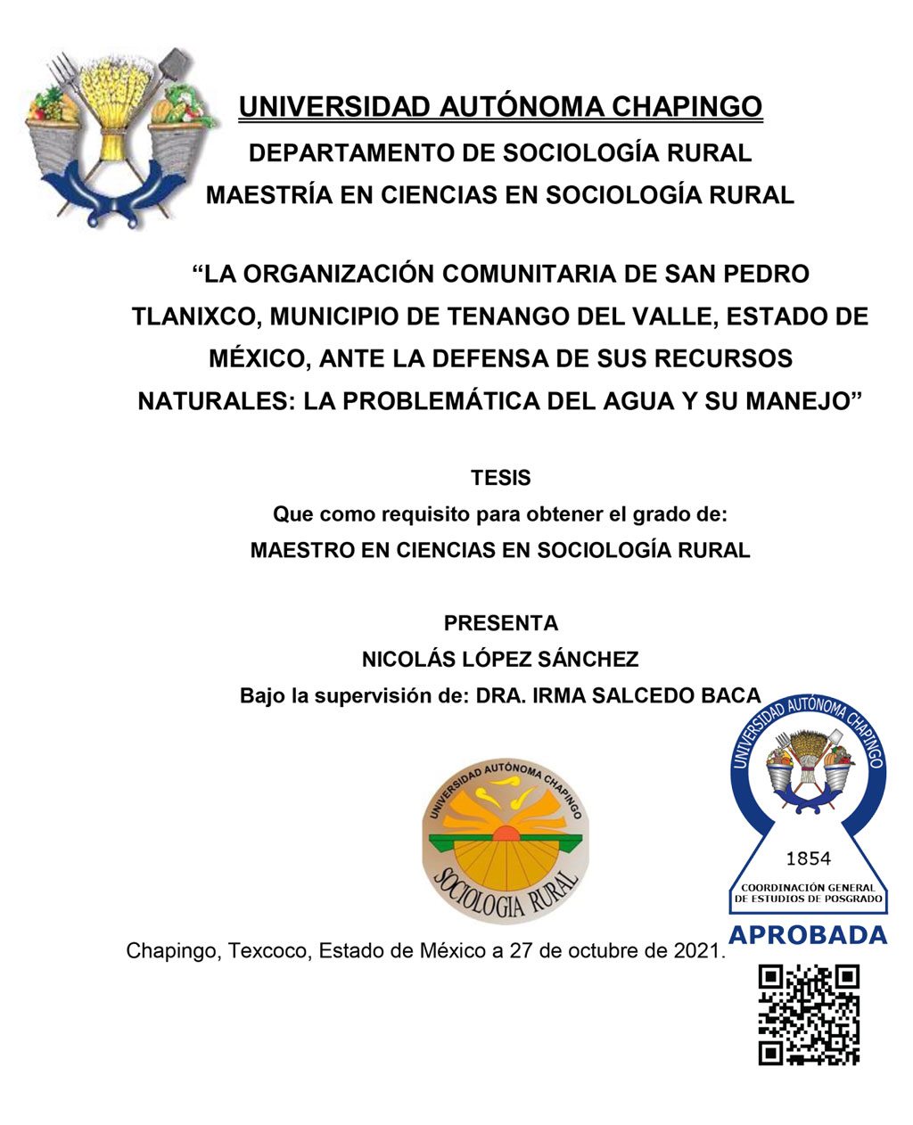 Tesis (Maestría en Ciencias en Sociología Rural)