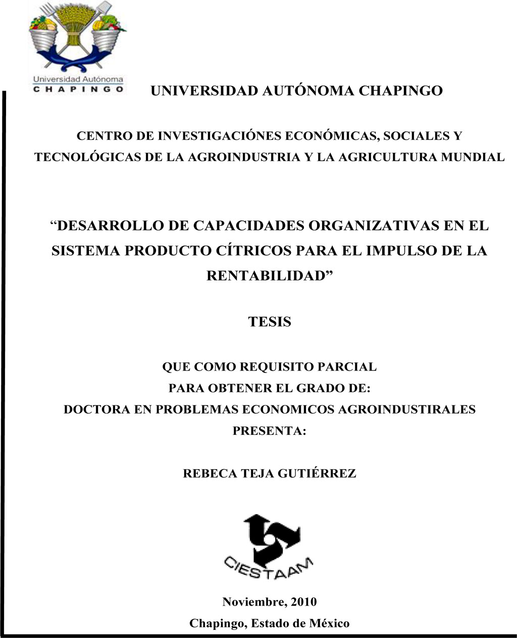 Tesis (Doctorado en Problemas Económico Agroindustriales)