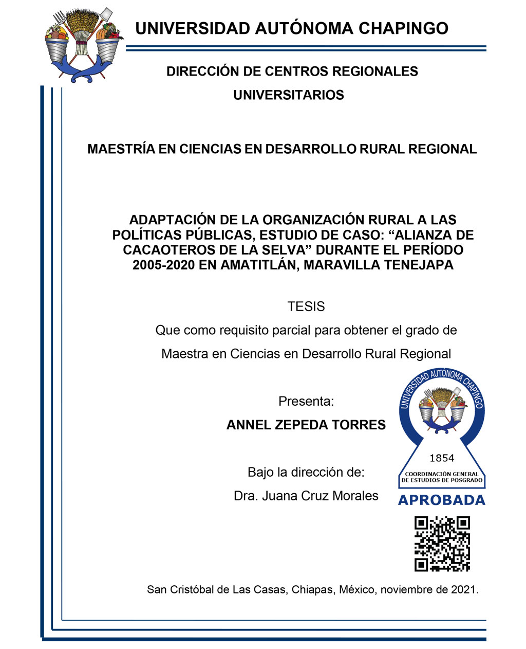 Adaptación de la organización rural a las políticas públicas, estudio de caso: "alianza de cacaoteros de la selva" durante el período 2005-2020 en Amatitlán, Maravilla Tenejapa