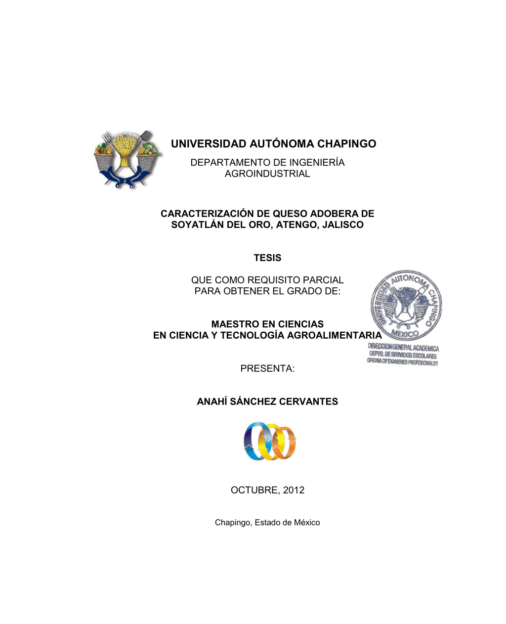 Caracterización de queso adobera de Soyatlán del Oro, Atengo, Jalisco
