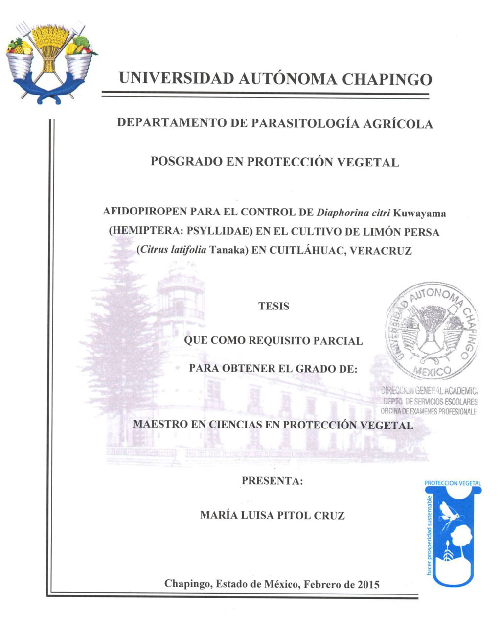 Tesis (Maestría en Ciencias en Protección Vegetal)