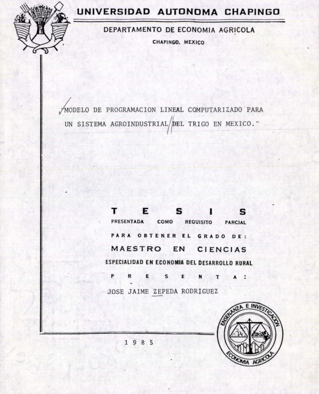 Modelo de programación lineal computarizado para un sistema agroindustrial del trigo en México