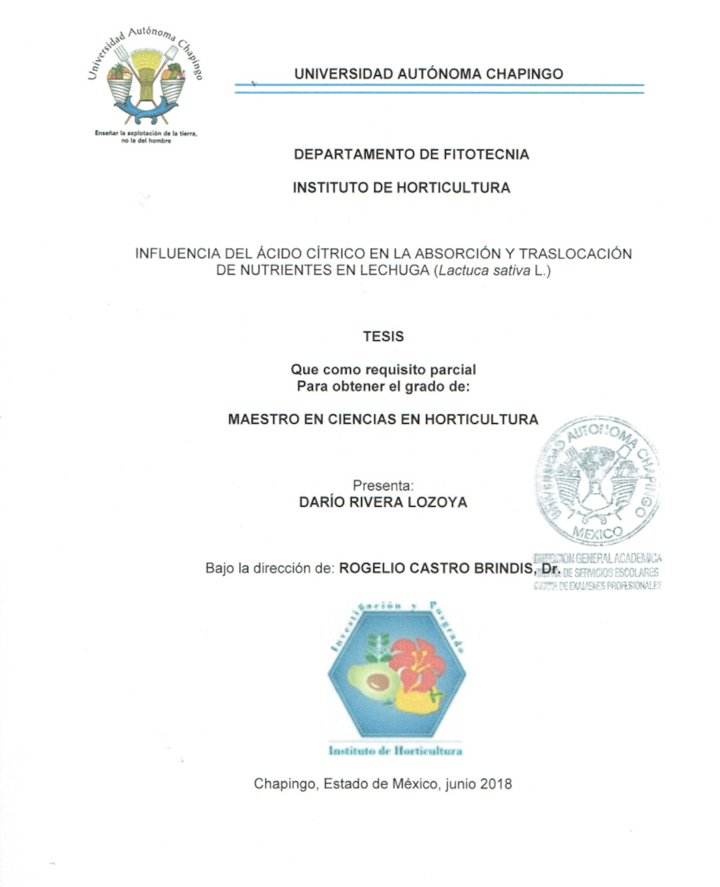 Influencia del ácido cítrico en la absorción y translocación de nutrientes en lechuga (Lactuca sativa L.)