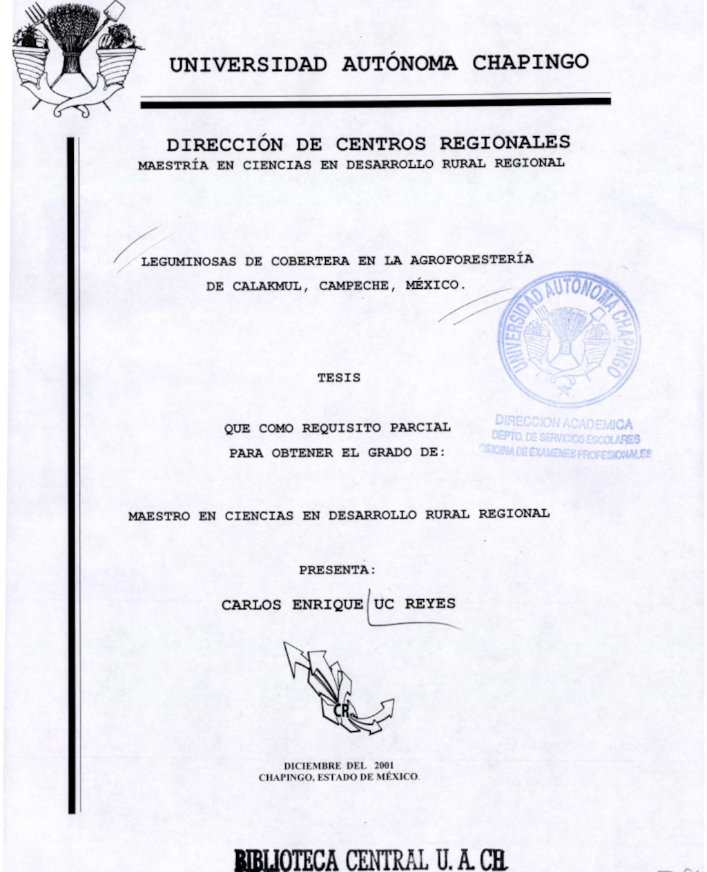 Leguminosas de cobertera en Ia Agroforestería de Calakmul, Campeche, México.
