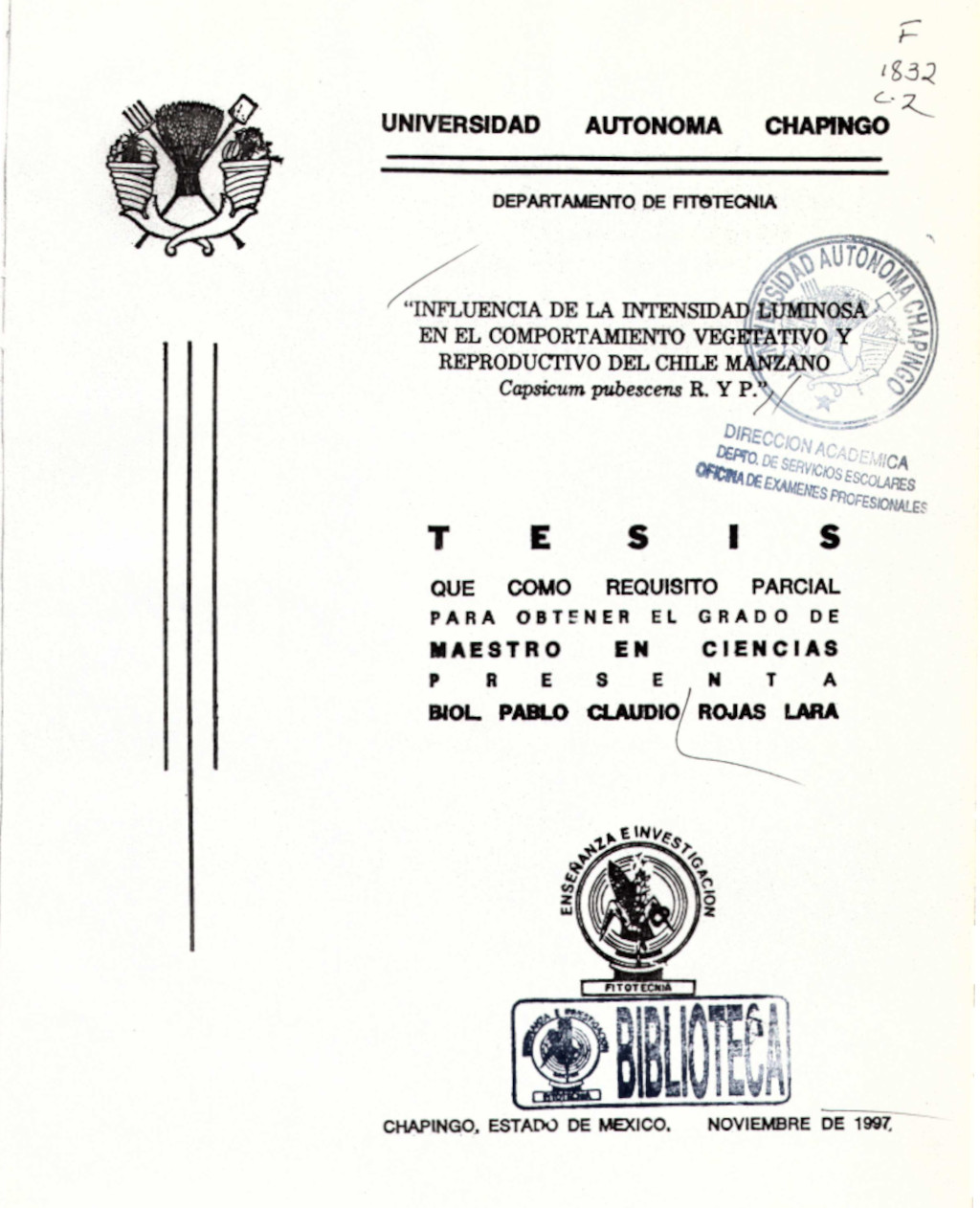 Influencia de la intensidad luminosa en el comportamiento vegetativo y reproductivo del chile manzano Capaicvm pubeacana R. y P."