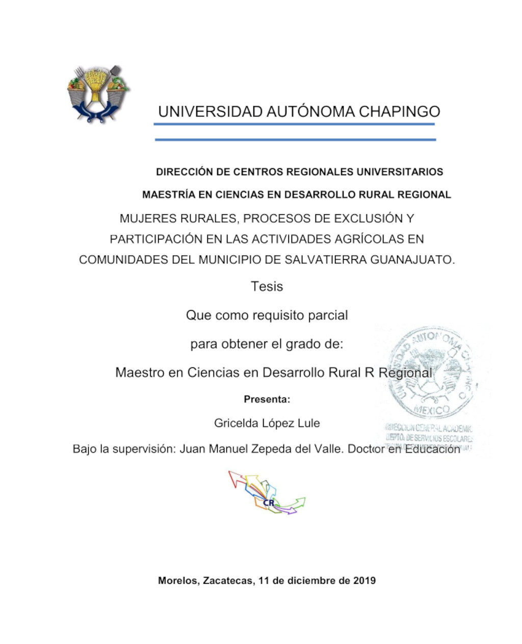 Mujeres rurales, procesos de exclusión y participación en las actividades agrícolas en comunidades del municipio de Salvatierra Guanajuato