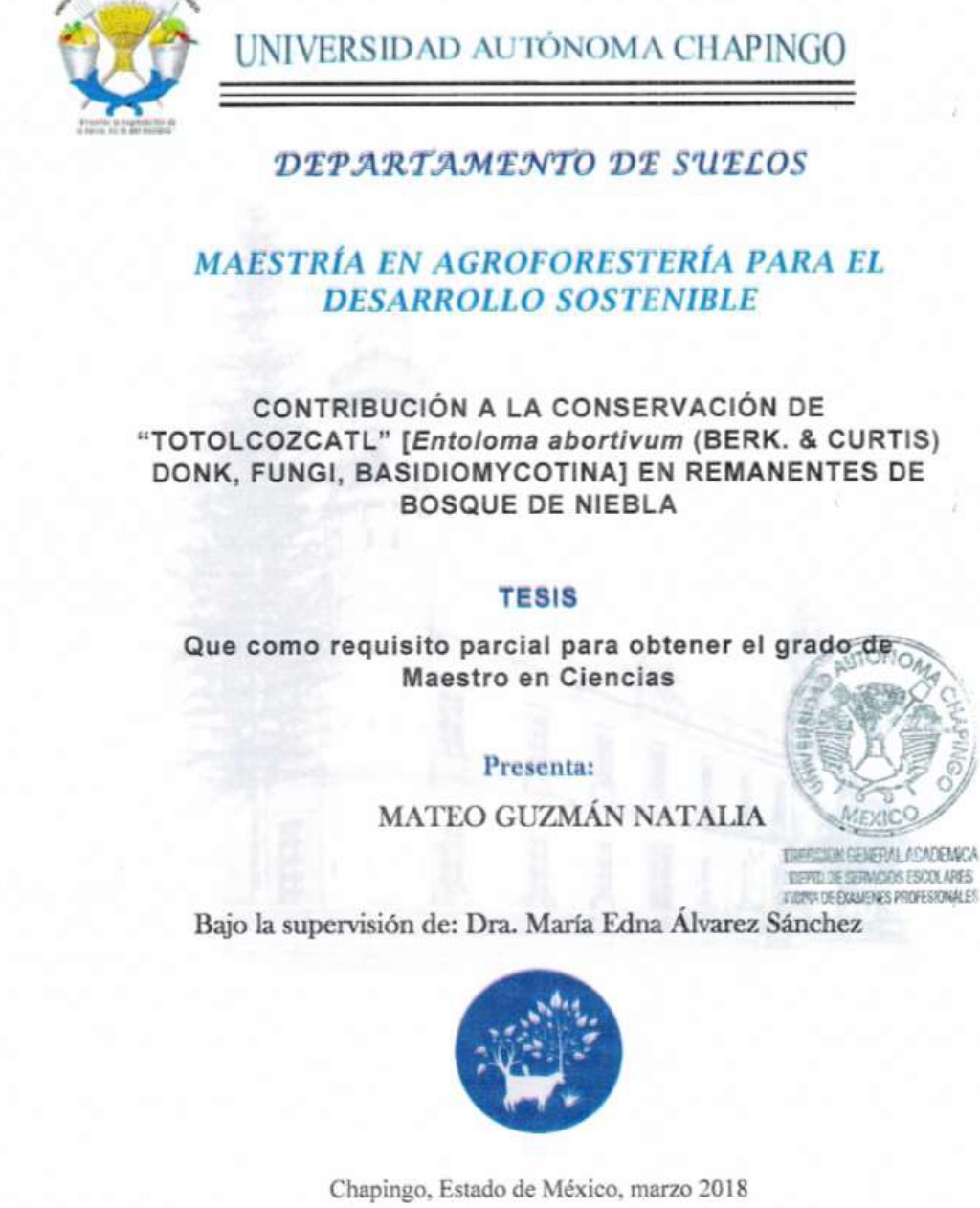 Los hongos silvestres comestibles son considerados un recurso forestal no maderable, de importancia alimenticia, ecológica, cultural y económica para las comunidades rurales, aprovechamiento que ha derivado en saqueo y sobreexplotación de la especie Entoloma abortivum conocido como “totolcozcatl” en el bosque mesófilo de montaña en Xaltepuxtla, Puebla. El presente trabajo hace una contribución al estudio de esta especie con fines de restauración y aprovechamiento sostenible por los productores de la zona. Mediante acciones participativas, se identificaron y caracterizaron sitios de emergencia del hongo. La caracterización del hábitat consistió en la identificación de especies vegetales y el porcentaje de sombra asociado, la medición de las condiciones ambientales, microclimáticas y composición química del sustrato en que se desarrolla el totolcozcatl. Para el seguimiento de las condiciones microclimáticas se colocaron sensores de temperatura y humedad relativa, antes y durante todo el período de desarrollo del hongo. Una vez que emergió el totolcozcatl, se colectaron esporomas para la caracterización taxonómica de la especie y para el aislamiento y cultivo del hongo por el método de contexto. Se evaluaron diferentes medios de cultivo en el desarrollo de las cepas aisladas. A partir del crecimiento del micelio en el mejor medio de cultivo, se produjo inóculo primario en semilla de sorgo, mismo que se llevó a campo para su reintroducción en los sitios que cumplían con los requerimientos para el desarrollo del hongo.