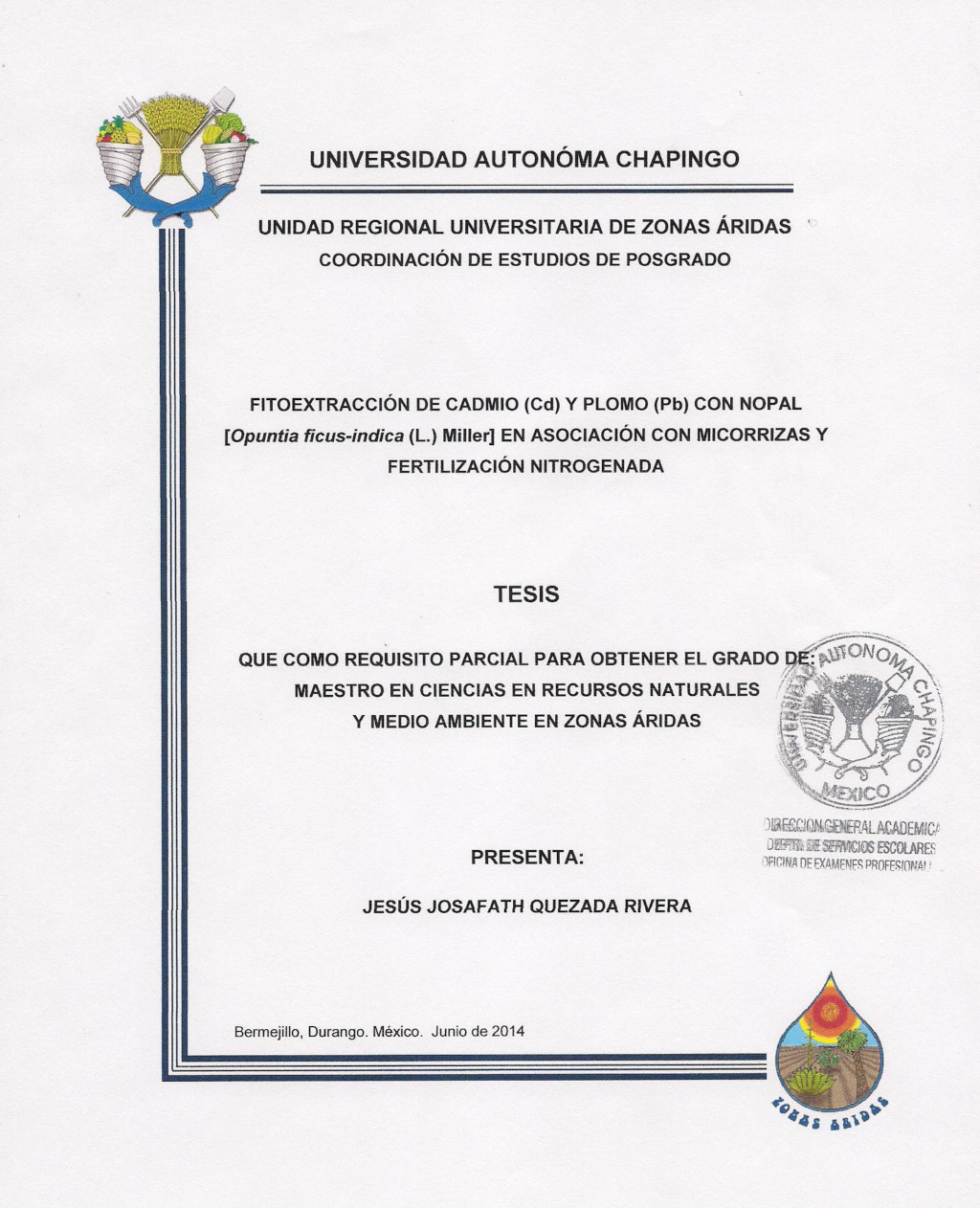 Fitoextracción de cadmio (Cd) y plomo (Pb) con nopal [Opuntia ficus-indica (L.) Miller] en asociación con micorrizas y fertilización nitrogenada