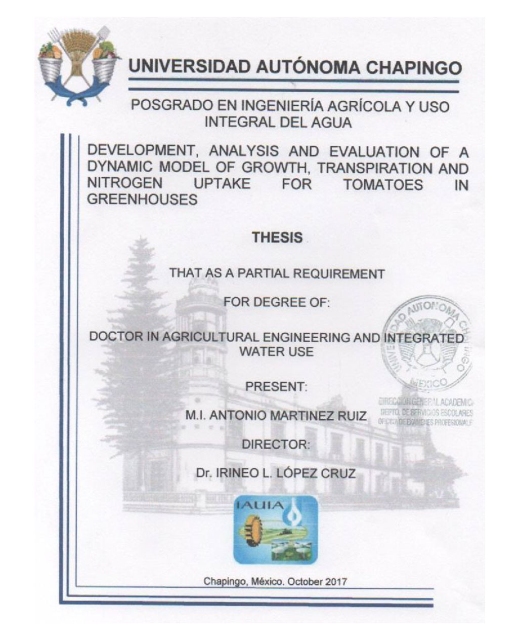 Tesis (Doctorado en Ingeniería Agrícola y Uso Integral del Agua)