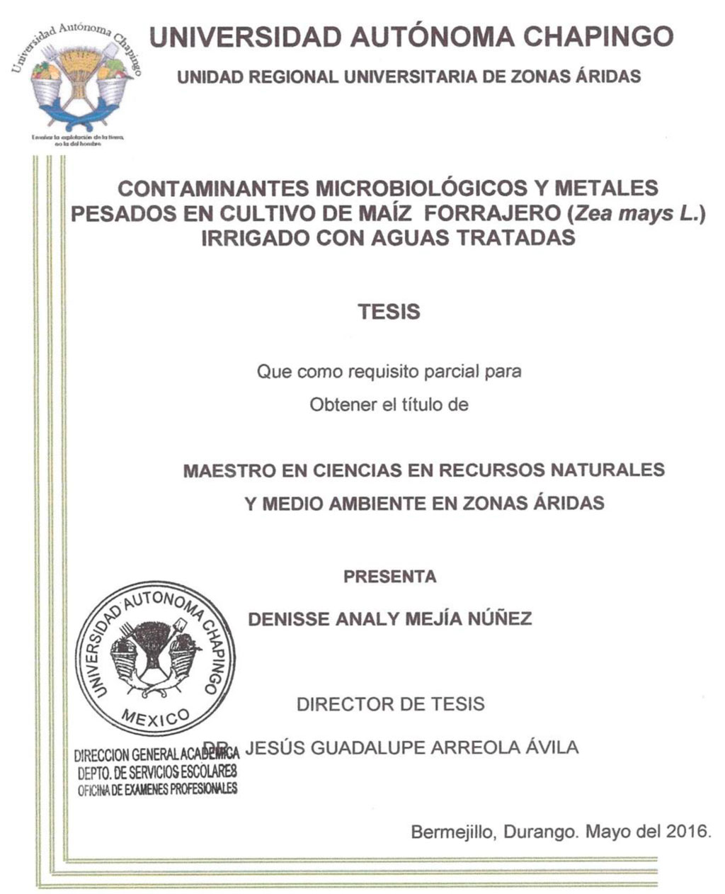 CONTAMINANTES MICROBIOLÓGICOS Y METALES PESADOS EN CULTIVO DE MAÍZ FORRAJERO (Zea mays L.) IRRIGADO CON AGUAS TRATADAS