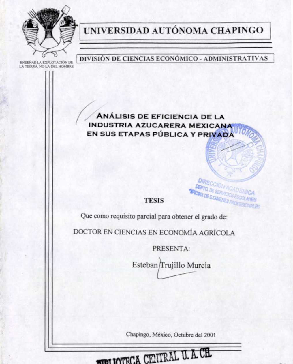Tesis (Doctorado en Ciencias en Economía Agrícola)