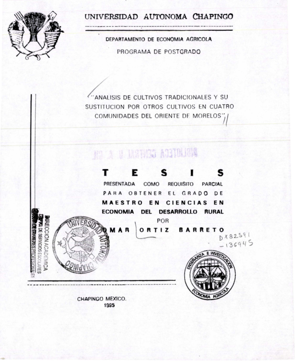 Análisis de cultivos tradicionales y su sustitución por otros cultivos en cuatro comunidades del oriente de Morelos