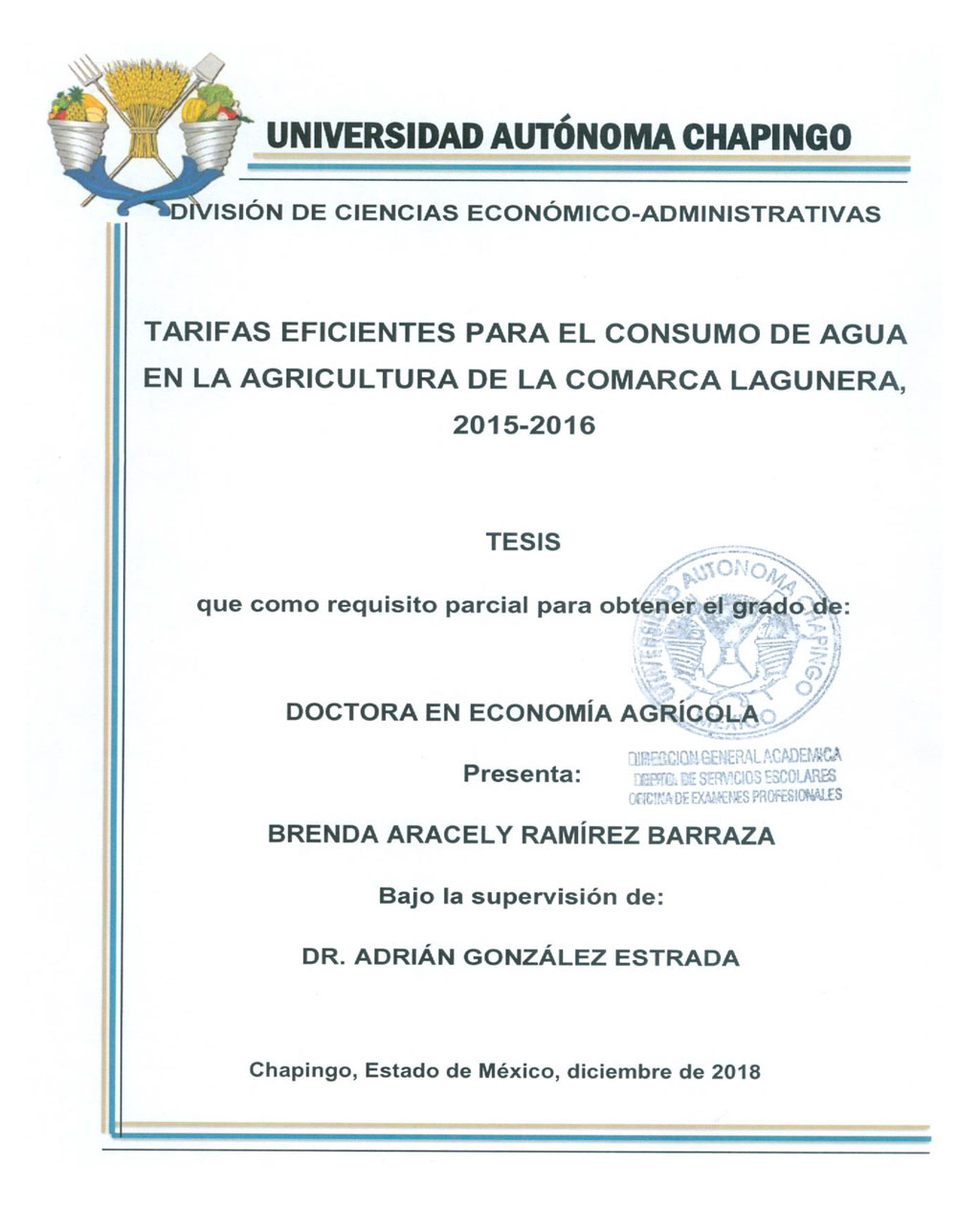 Tarifas eficientes para el consumo de agua en la agricultura de la comarca lagunera 2015-2016