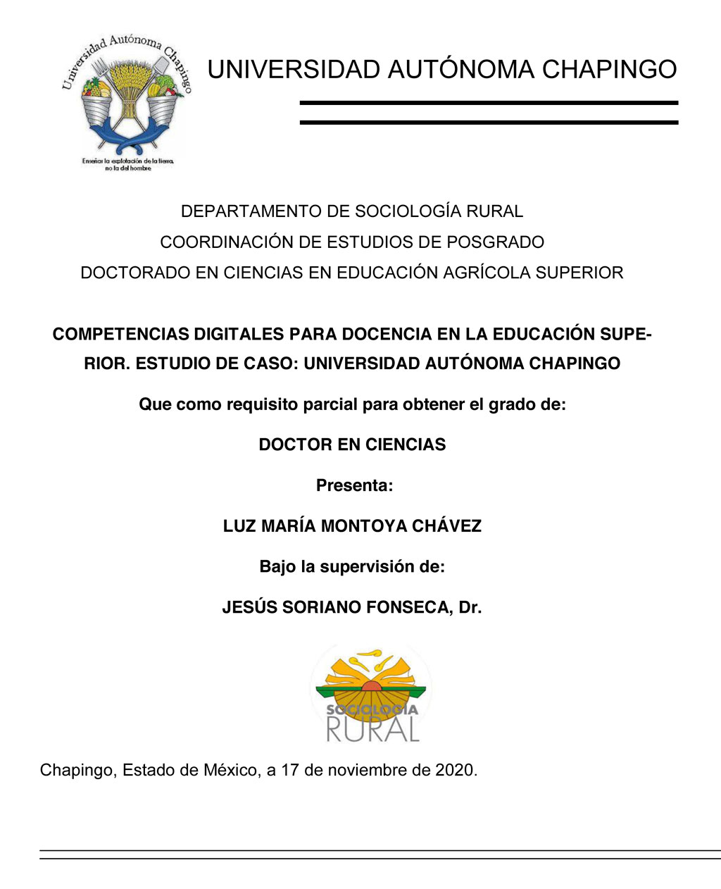 Competencias Digitales para la docencia en la Educación Superior. Estudio de Caso: Universidad Autónoma Chapingo
