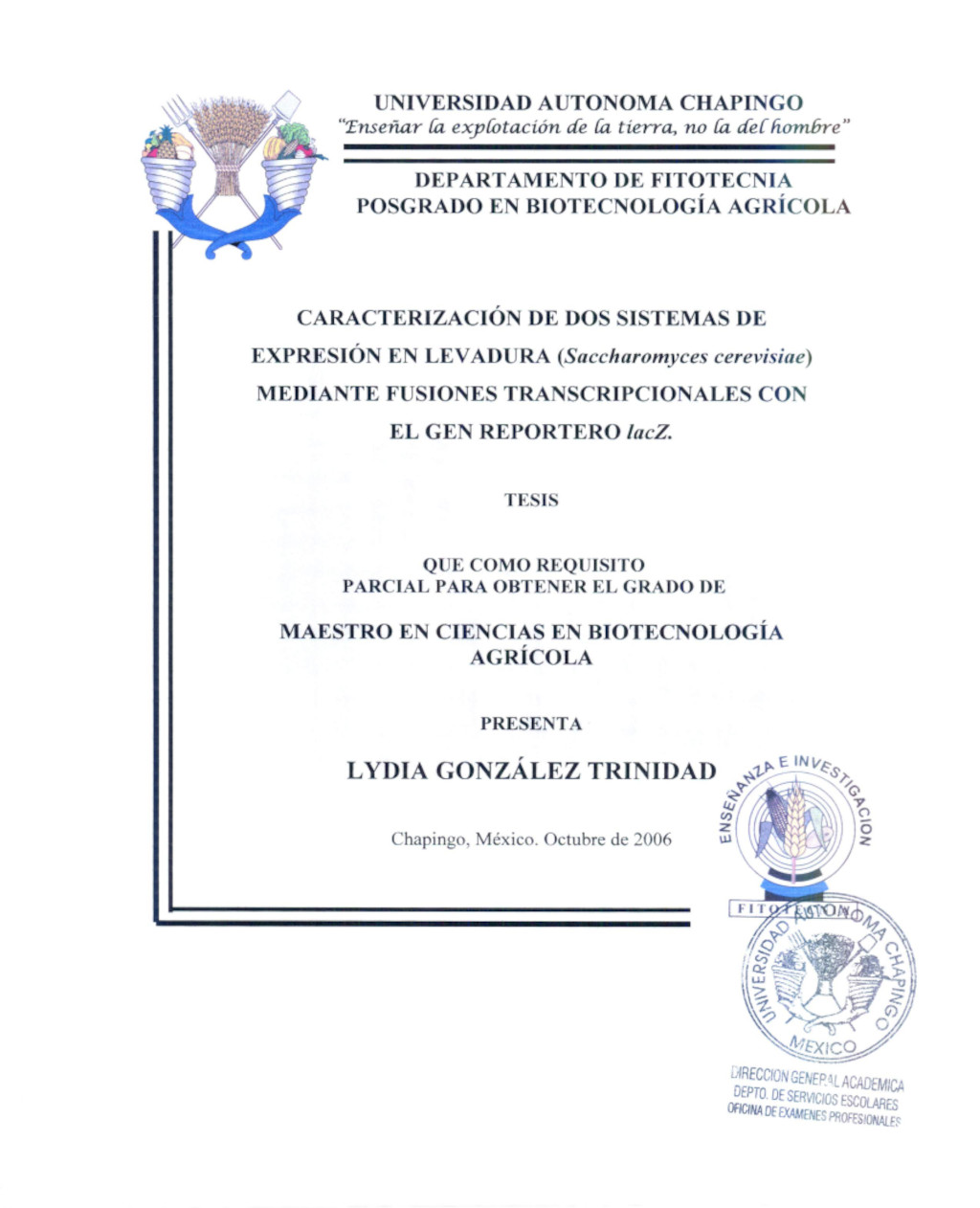 Caracterización de dos sistemas de expresión en levadura (Saccharomyces cerevisiae) mediante fusiones transcripcionales con el gen reportero lacZ