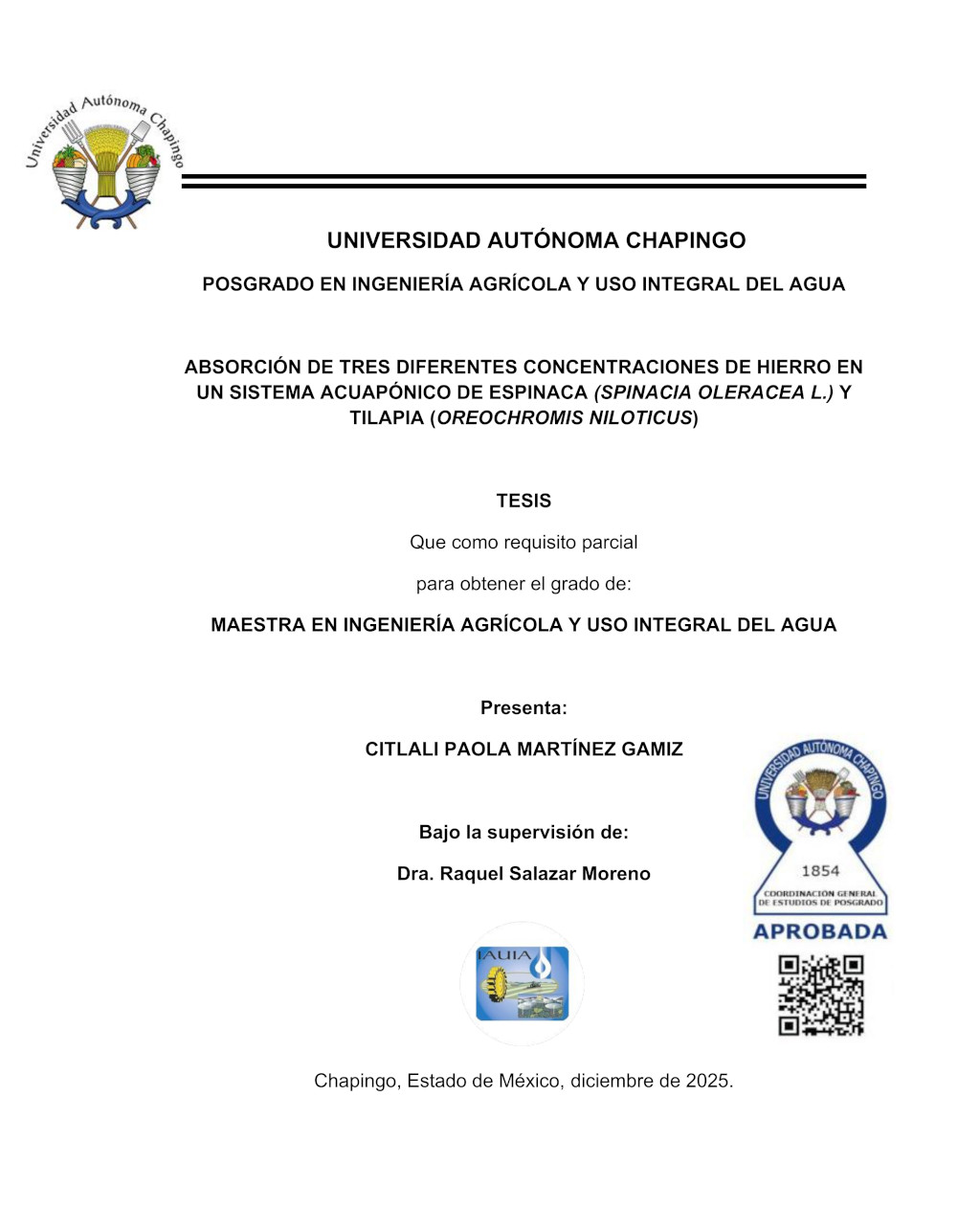 Absorción de tres diferentes concentraciones de hierro en un sistema acuapónico de espinaca (Spinaca oleracea L.) y tilapia (Oreochromis niloticus)