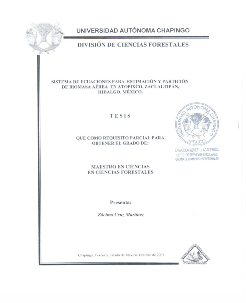 Sistema de ecuaciones para estimación y partición de biomasa aérea en Atopixco, Zacualtipán, Hidalgo, México