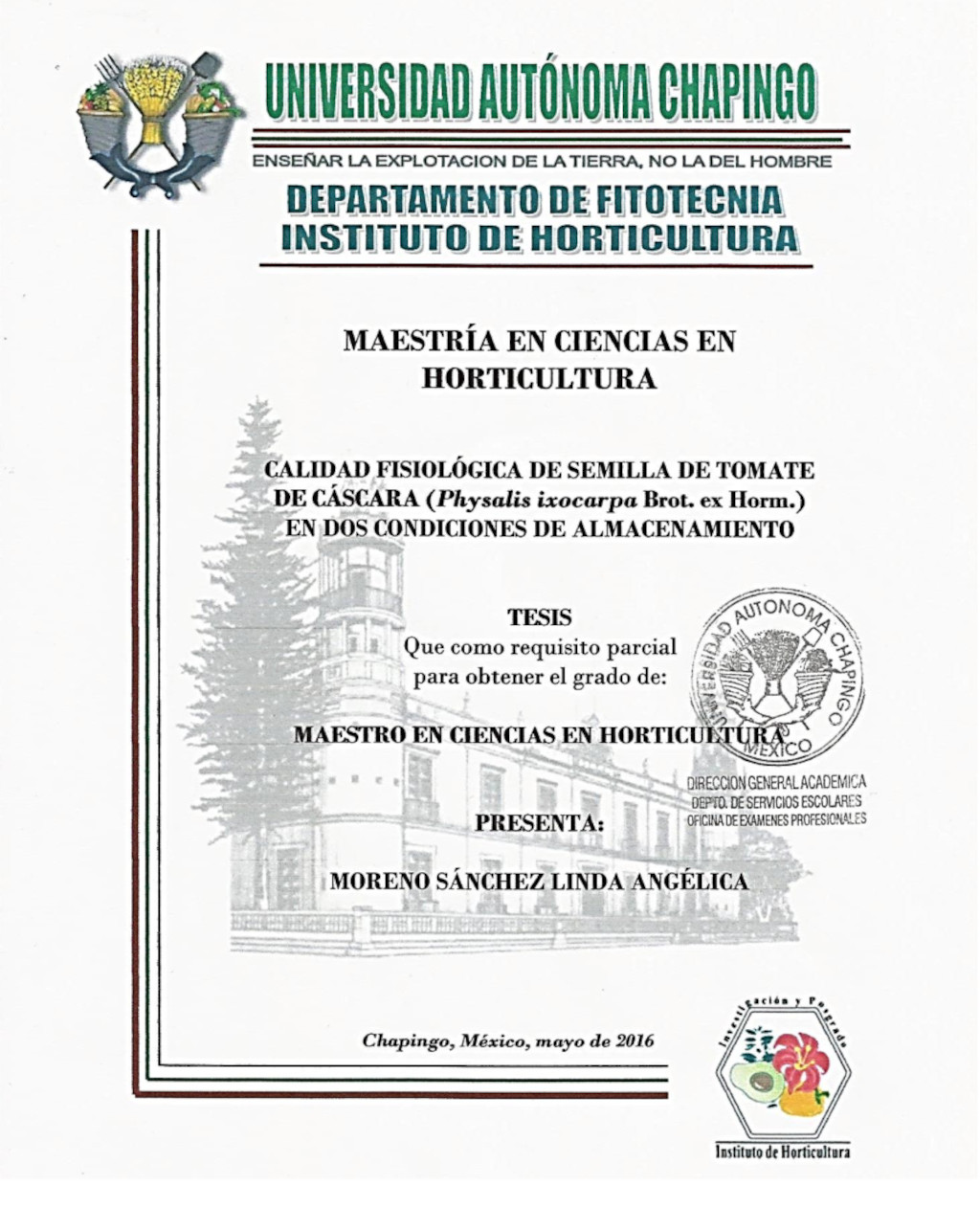 la Universidad Autónoma Chapingo, México. Se