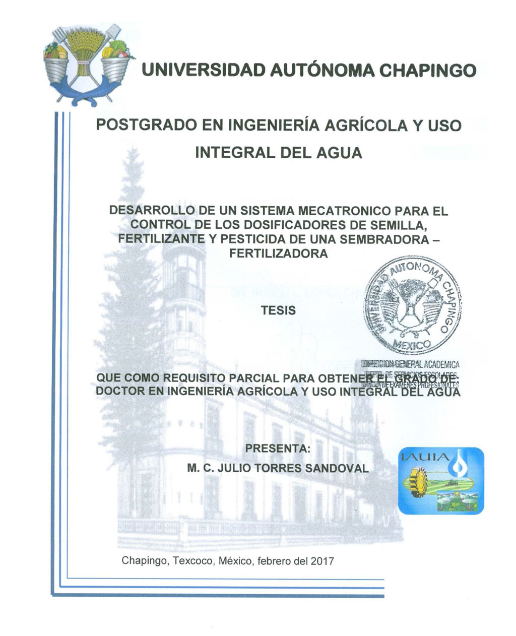 Tesis (Doctorado en Ingeniería Agrícola y Uso Integral del Agua)