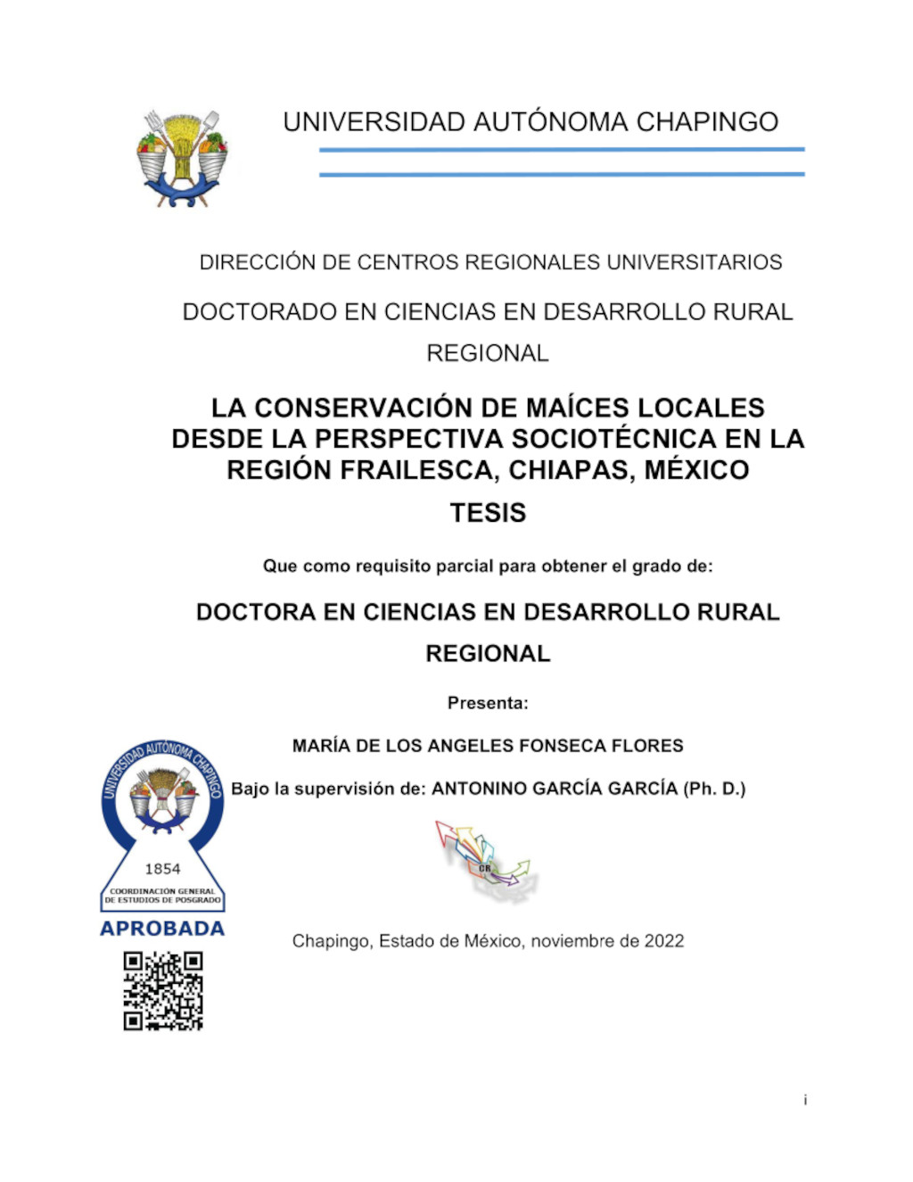 La conservación de maíces locales desde la perspectiva sociotécnica en la Región Frailesca, Chiapas, México.