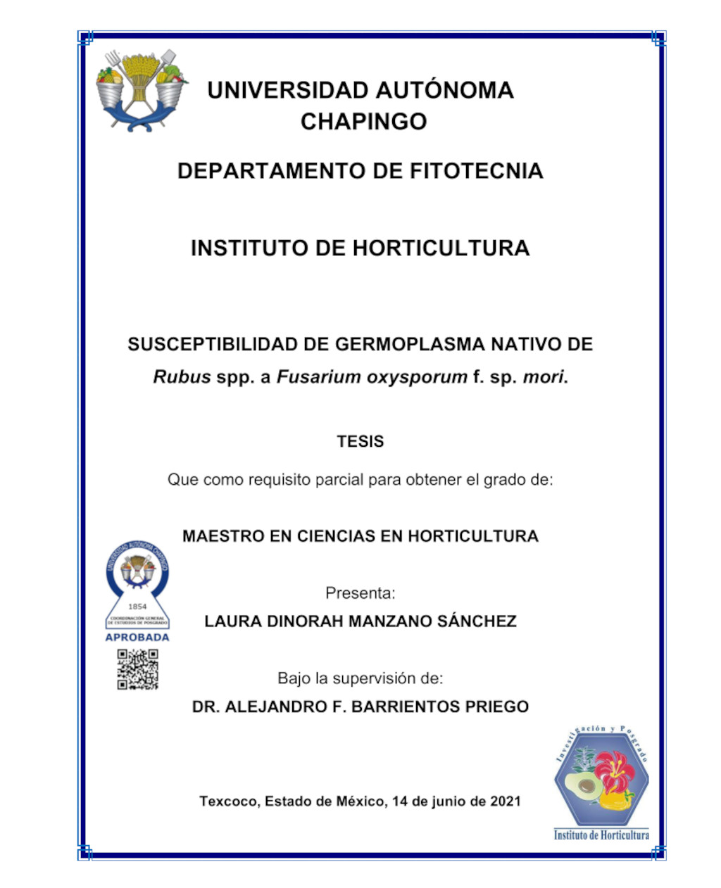 Susceptibilidad de germoplasma nativo de Rubus spp. a Fusarium oxysporum f. sp. mori.