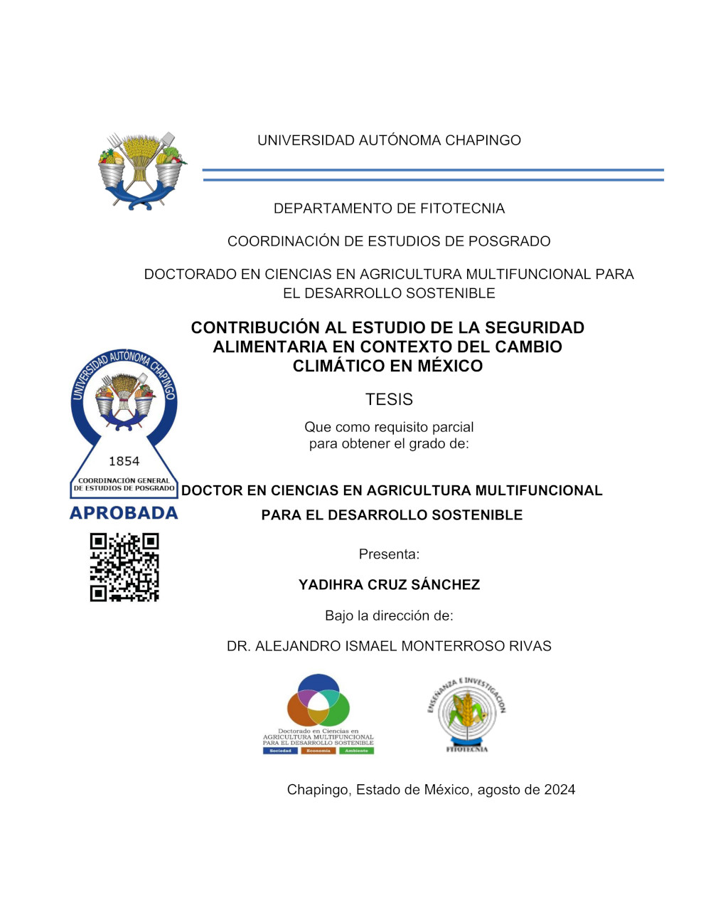 Tesis (Doctorado en Ciencias en Agricultura Multifuncional para el Desarrollo Sostenible)