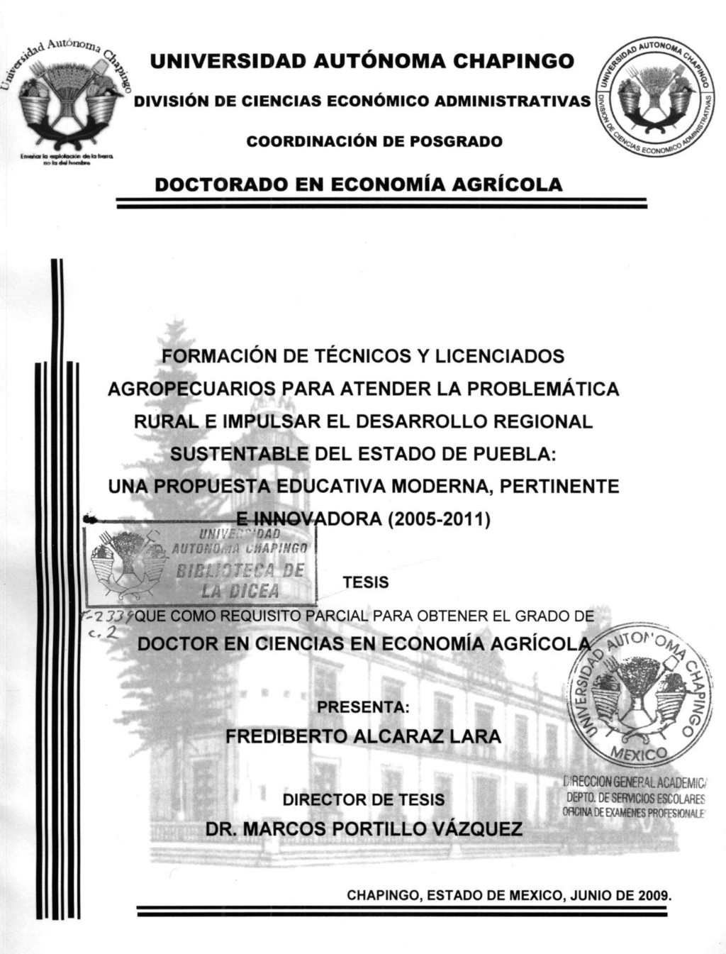 Formación de técnicos y licenciados agropecuarios para atender la problemática rural e impulsar el desarrollo regional sustentable del estado de Puebla: una propuesta educativa moderna, pertinente e innovadora (2005-2011)