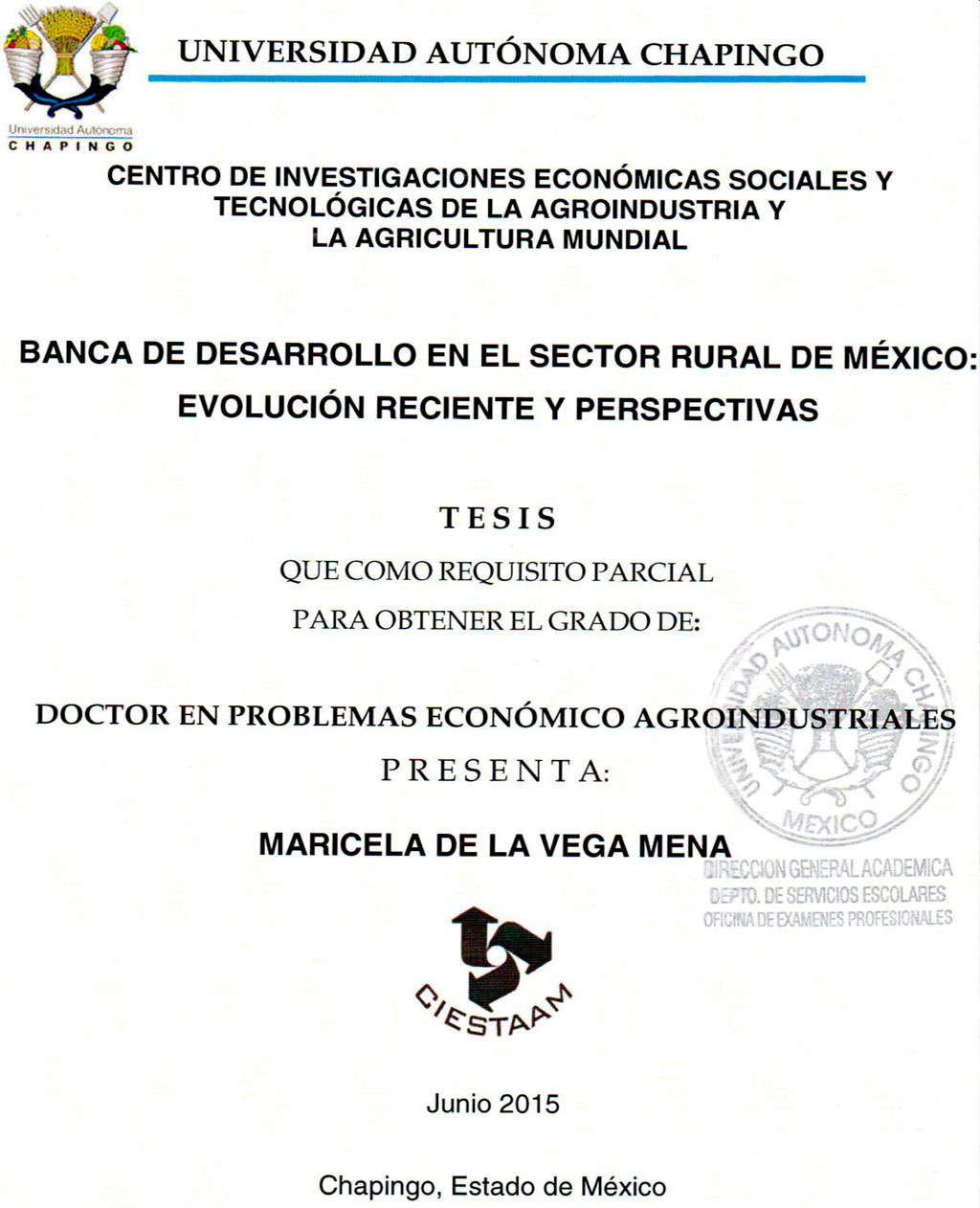 Tesis (Doctorado en Problemas Económico Agroindustriales)