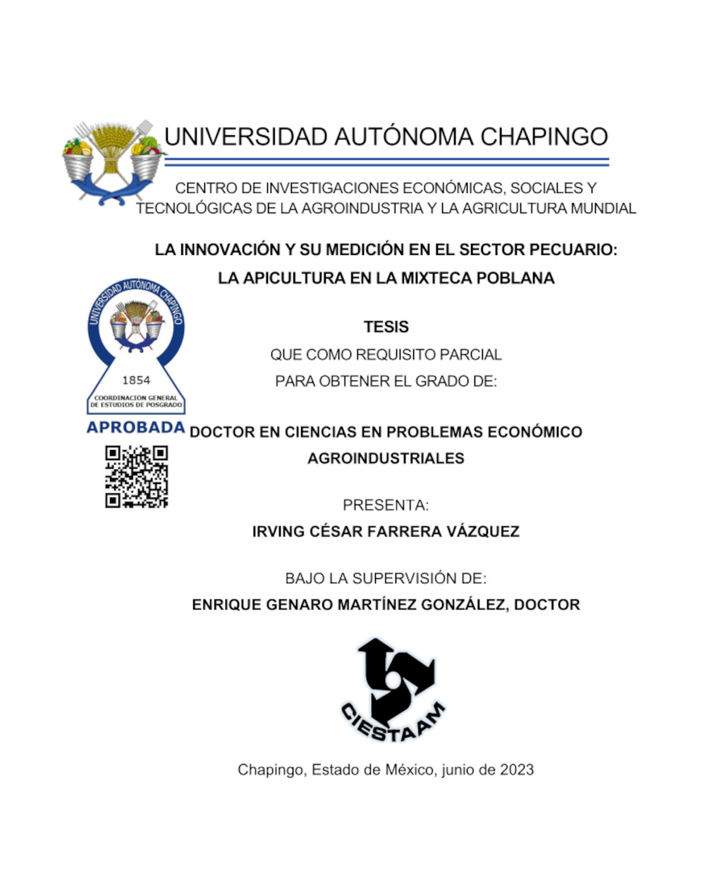 Tesis (Doctorado en Problemas Económico Agroindustriales)