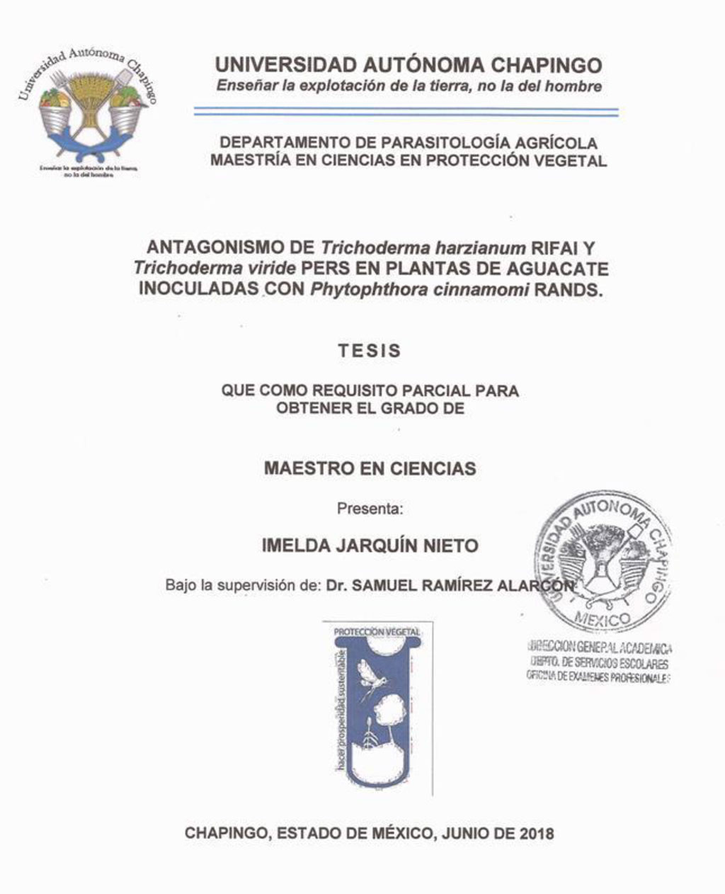 Tesis (Maestría en Ciencias en Protección Vegetal)