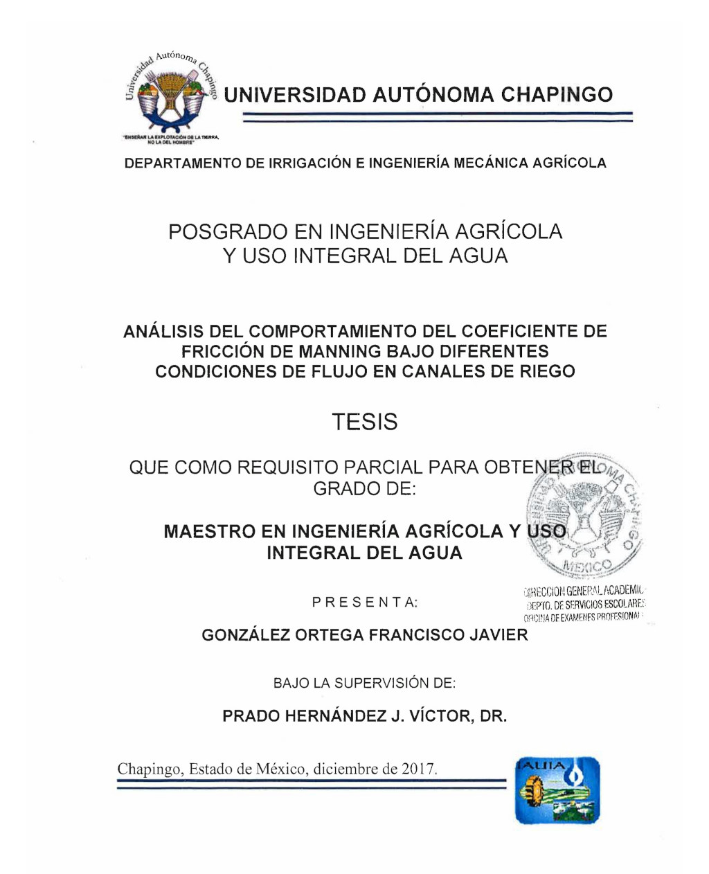variado (FGV) en el canal metálico de la Universidad Autónoma Chapingo.