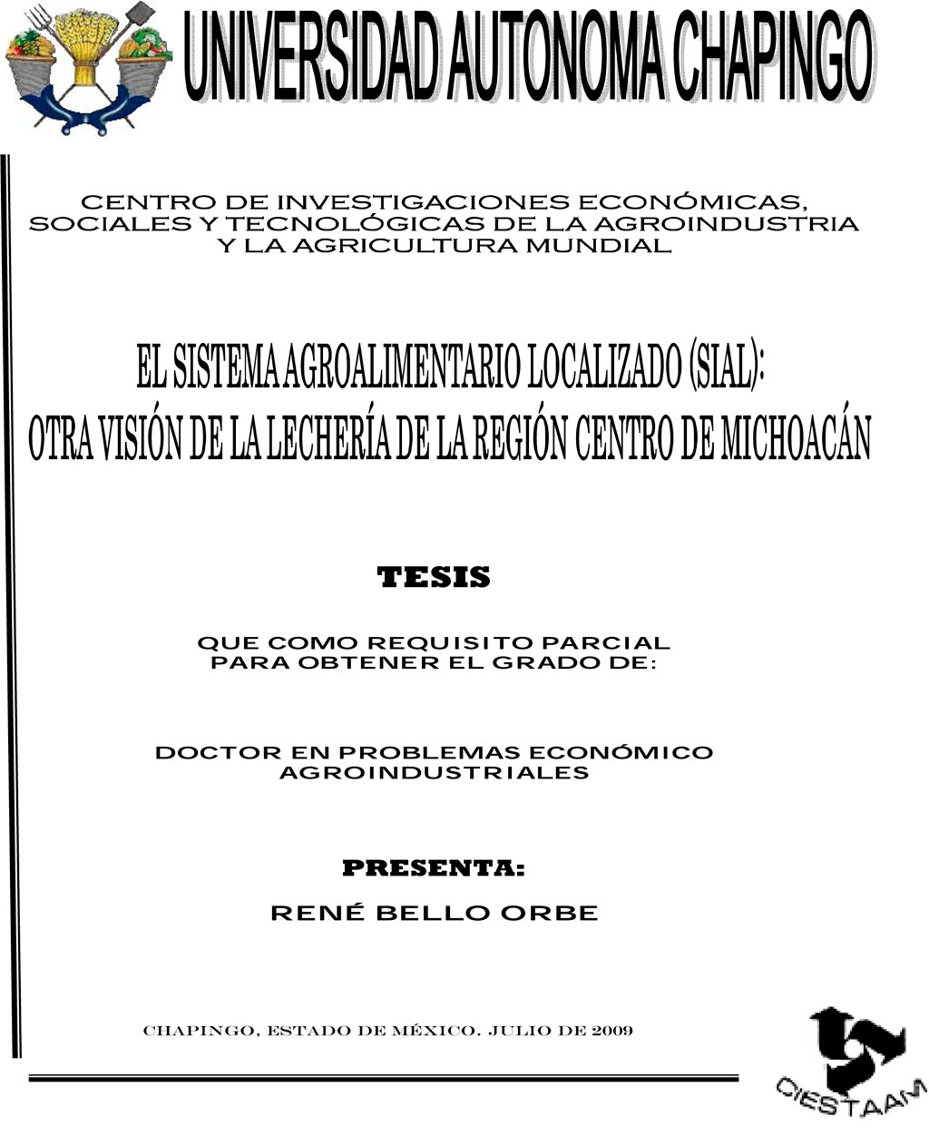 Tesis (Doctorado en Problemas Económico Agroindustriales)