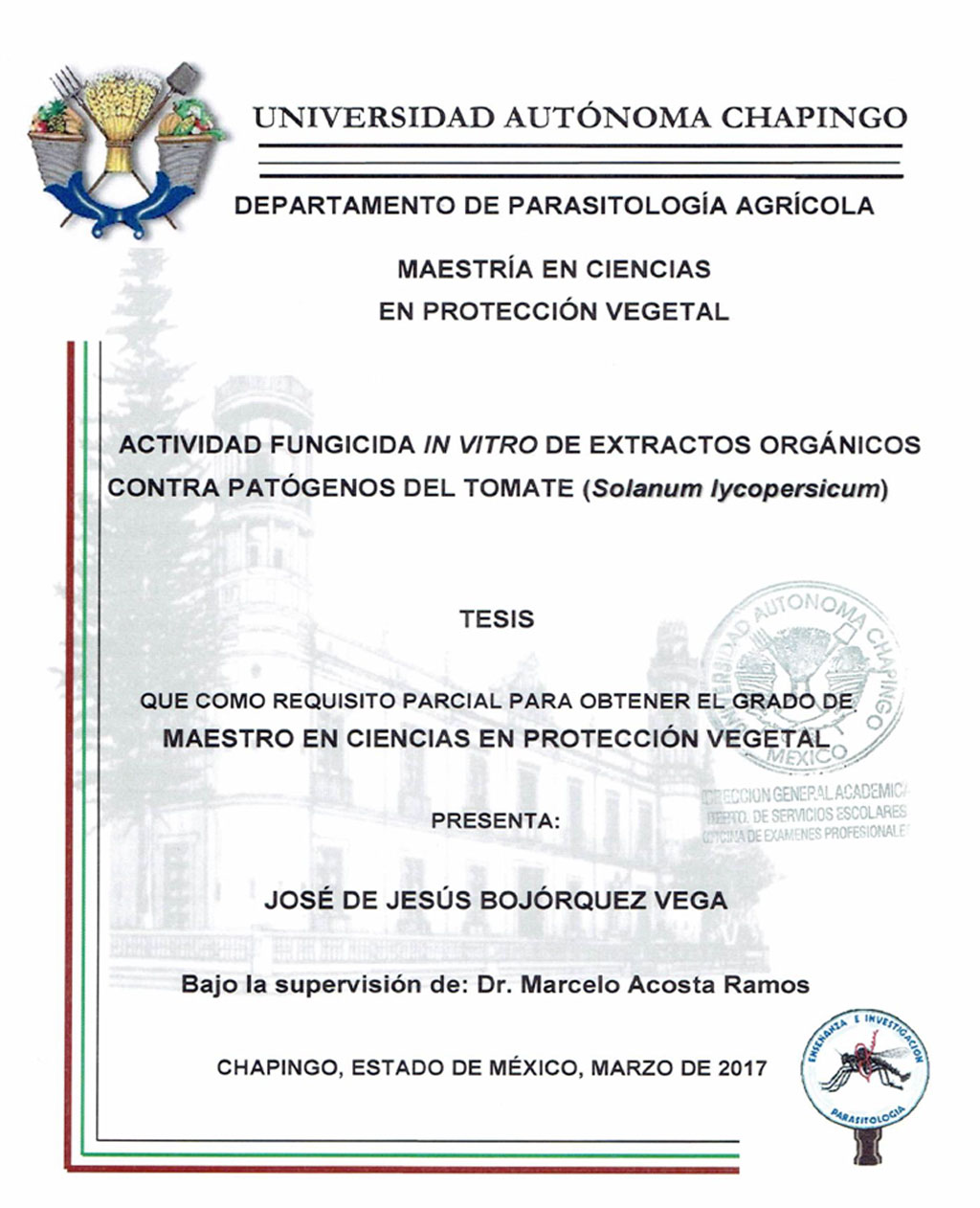 Tesis (Maestría en Ciencias en Protección Vegetal)