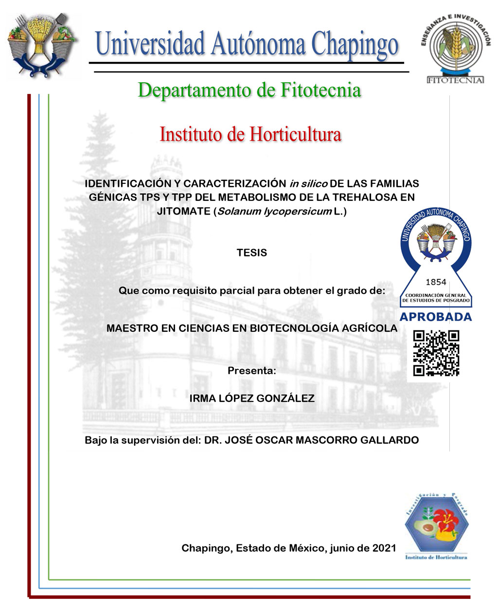 Identificación y caracterización in silico de las familias génicas TPS y TPP del metabolismo de la trehalosa en jitomate (Solanum Lycopersicum L.