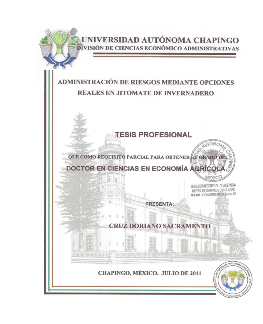 Tesis (Doctorado en Ciencias en Economía Agrícola)