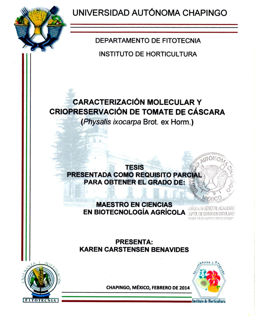 Caracterización molecular y criopreservación de tomate de cáscara (Physalis ixocarpa Brot. ex Horm.)