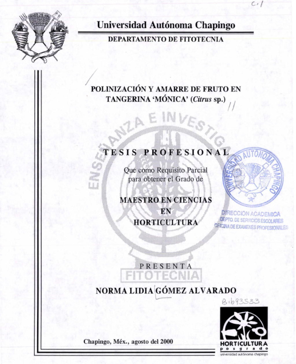 Polinizacion y amarre de fruto en tangerina 'MONICA' (Citrus sp.)