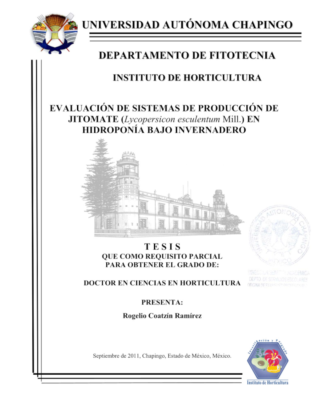 Tesis (Doctorado en Ciencias en Horticultura)