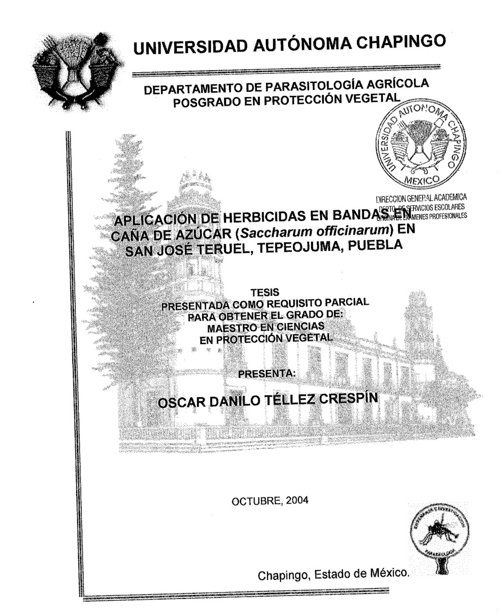 Tesis (Maestría en Ciencias en Protección Vegetal)
