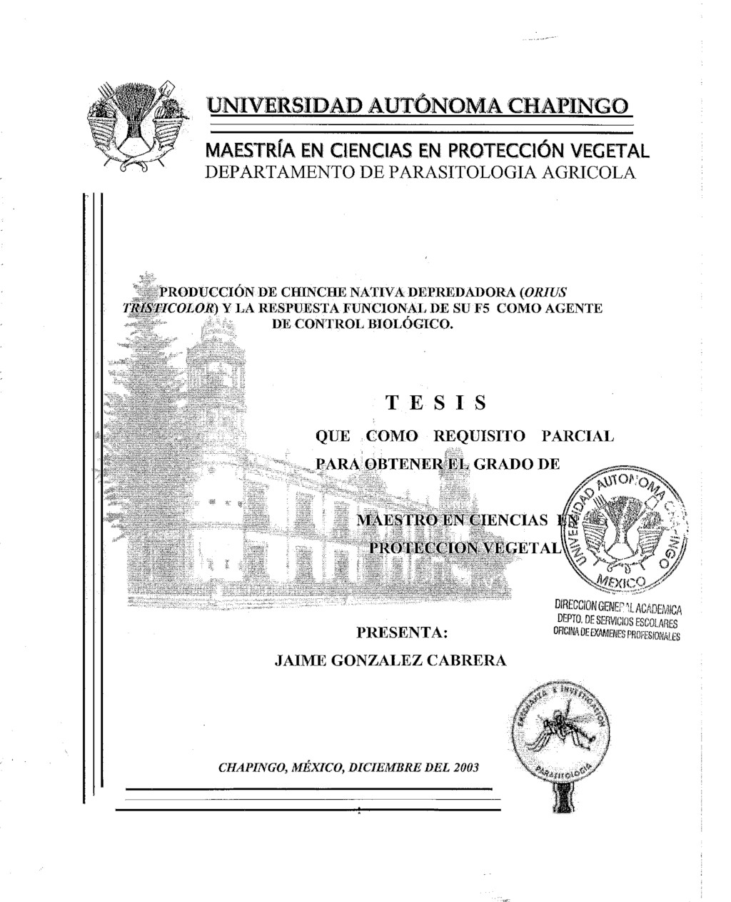 Tesis (Maestría en Ciencias en Protección Vegetal)
