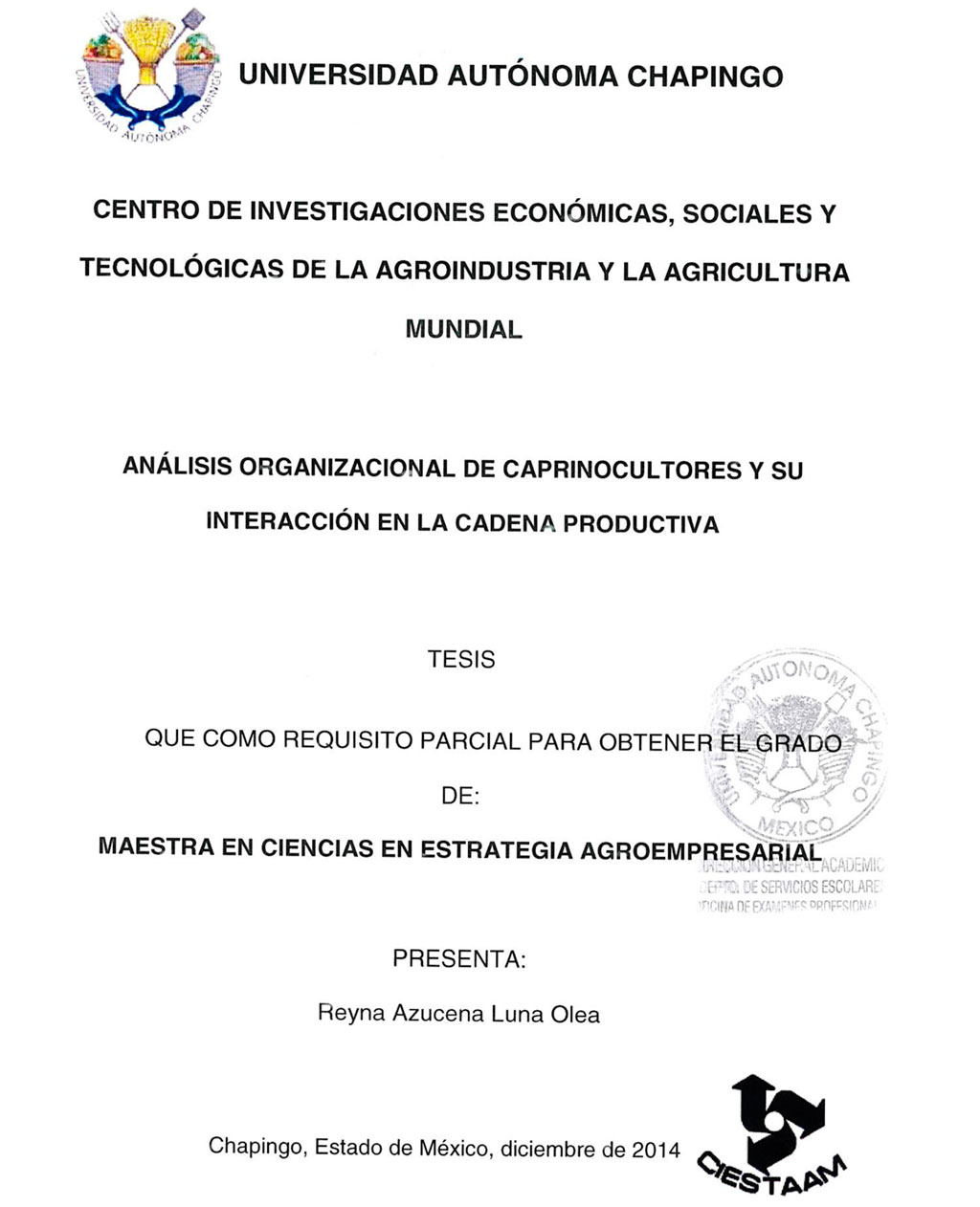 Tesis (Maestría en Ciencias en Estrategia Agroempresarial)
