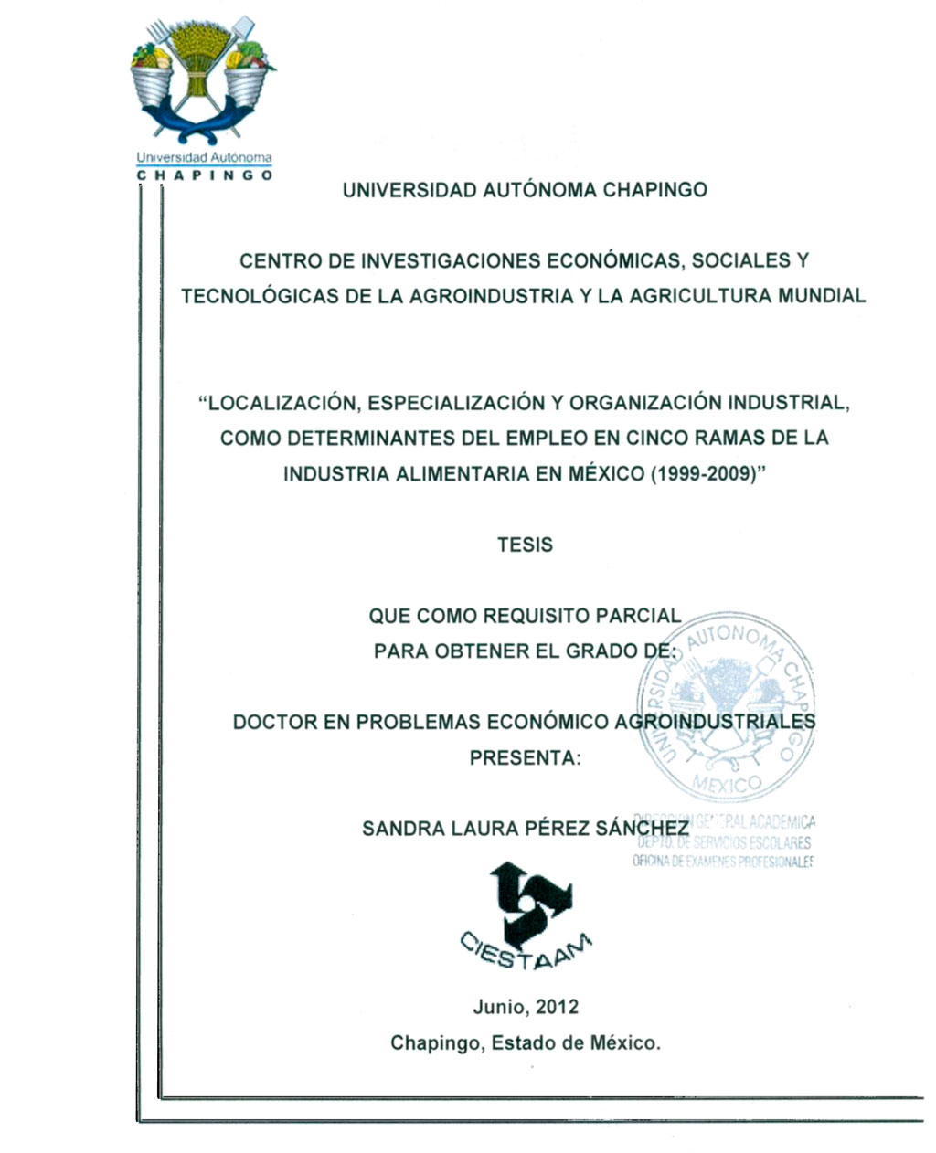 Tesis (Doctorado en Problemas Económico Agroindustriales)