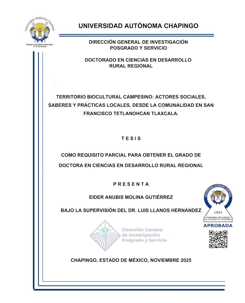 Territorio biocultural campesino: actores sociales, saberes y prácticas locales, desde la comunidad de San Francisco Tetlanohcan Tlaxcala