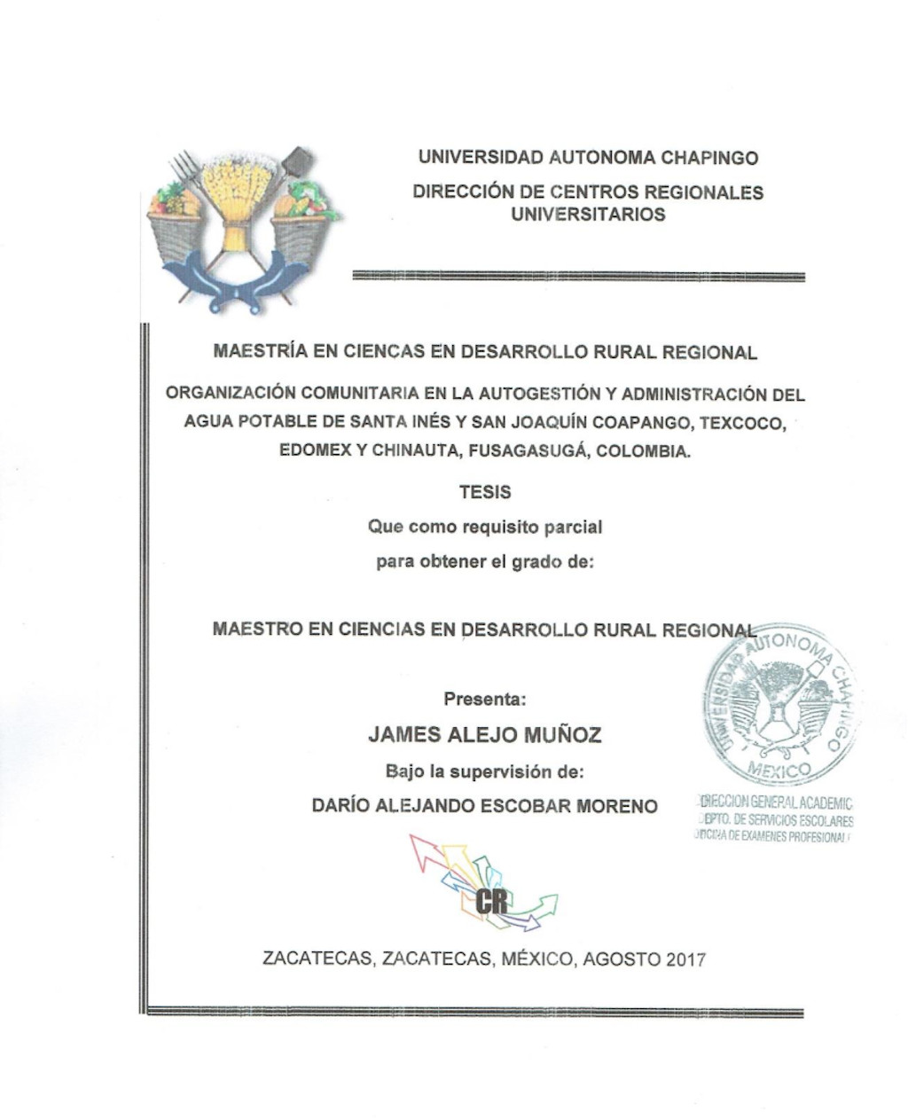 Organización comunitaria en la autogestión y administración del agua potable de Santa Inés y San Joaquín Coapango, Texcoco, Edomex, y Chinauta, Fusagasugá, Colombia