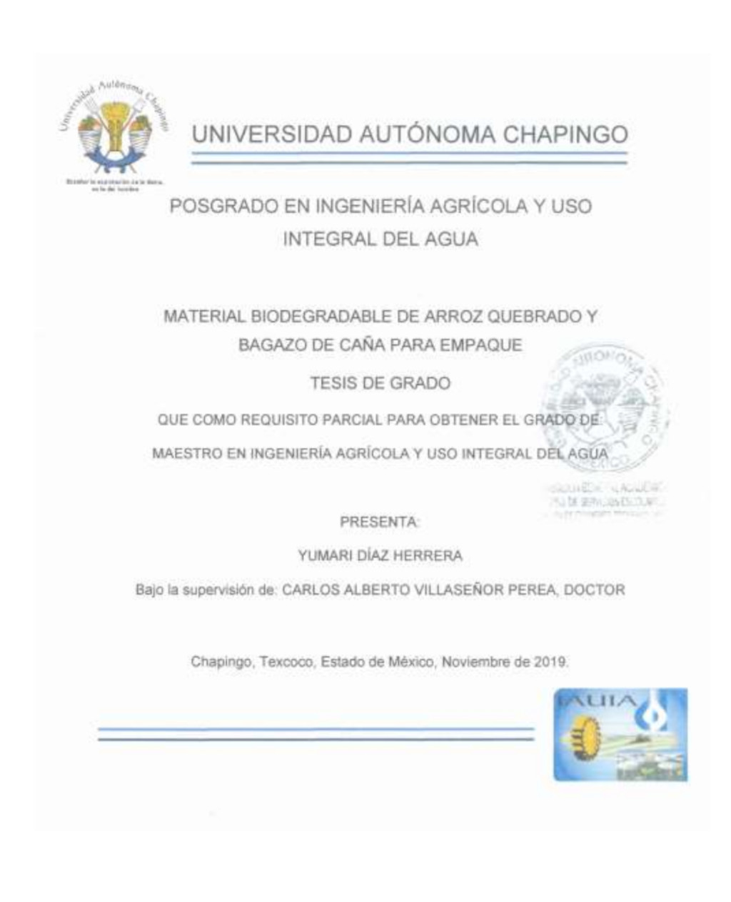 Material biodegradable de arroz quebrado y bagazo de caña para empaque