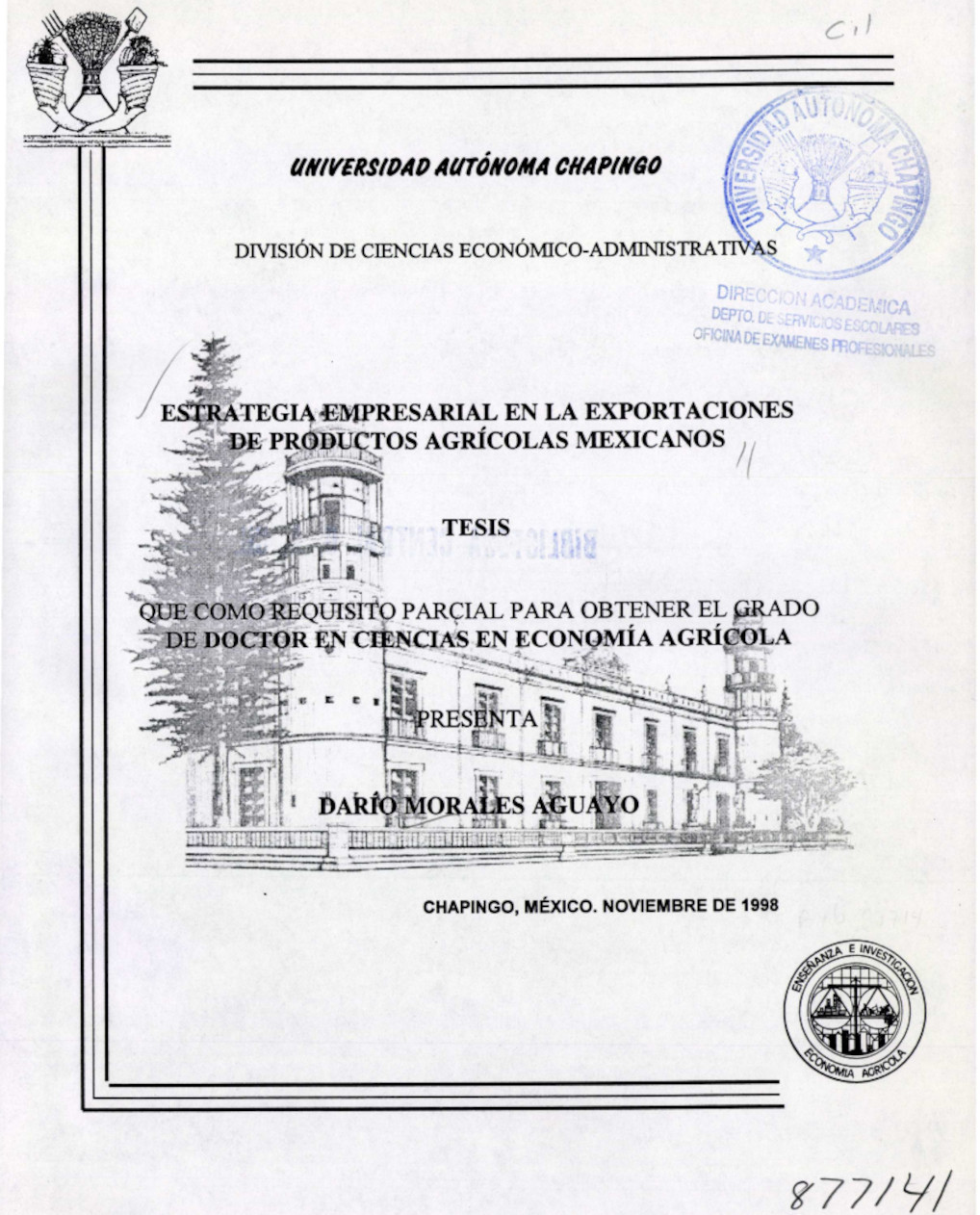 Tesis (Doctorado en Ciencias en Economía Agrícola)