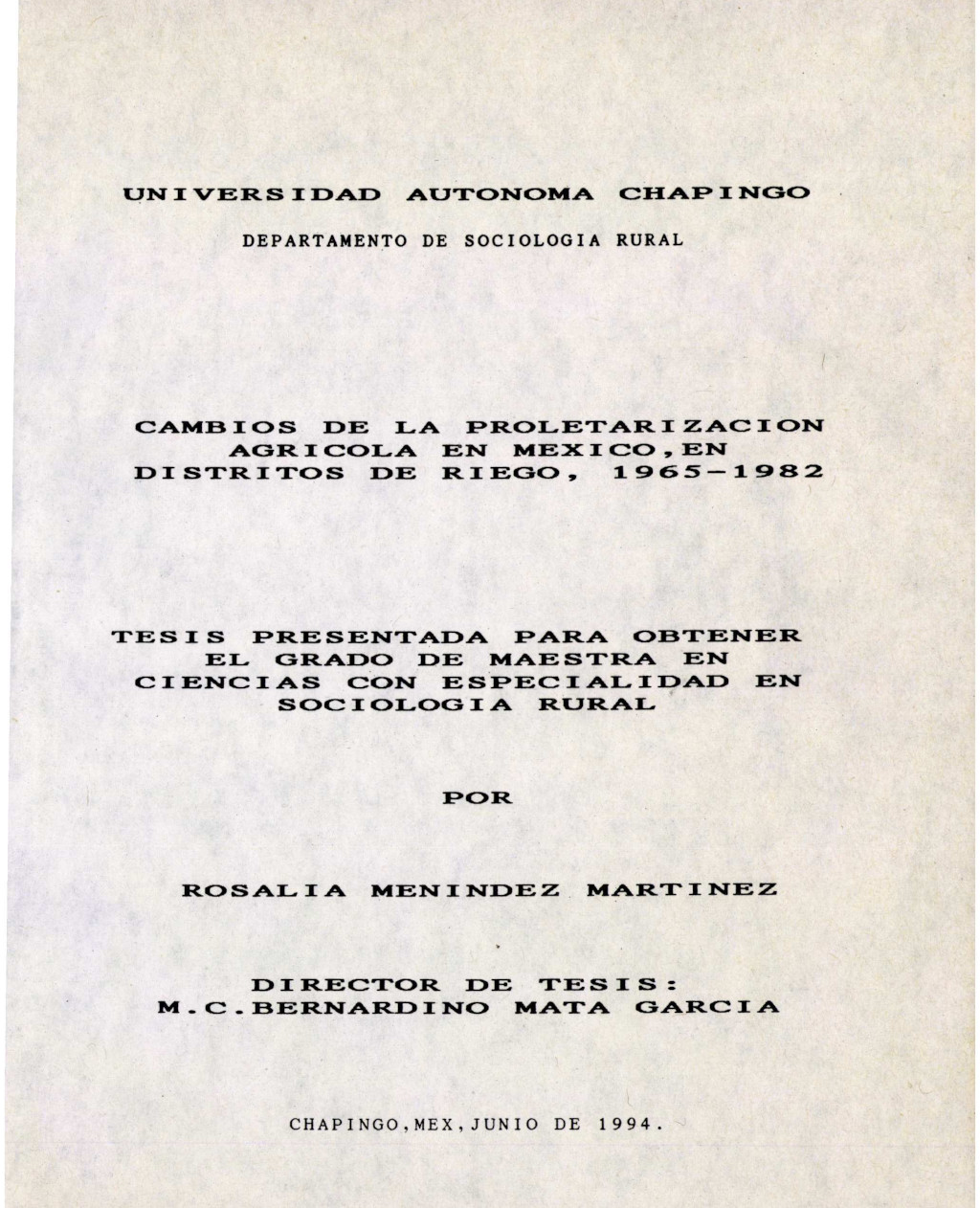 Cambios de la proletarización agrícola en México, en distritos de riego, 1965-1982